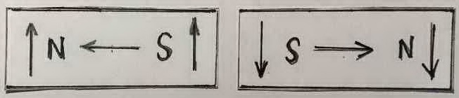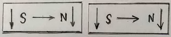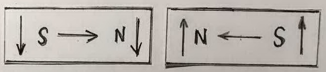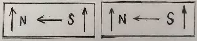 1 - End arrows indicate spin direction, Center arrow indicates flow direction. Notice both magnets are identical. |