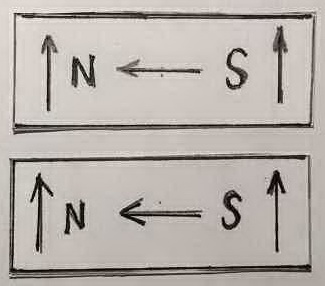 1 - End arrows indicate spin direction, Center arrow indicates flow direction. Notice both magnets are identical. |
